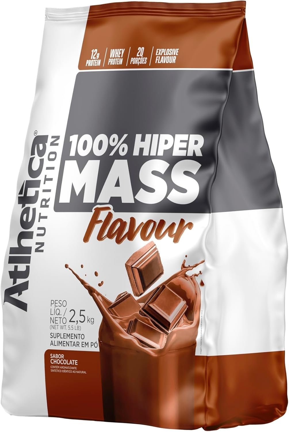 Em até 1x de R$49,97 sem jurosEm até 12x de R$4,73 com juros À vistaR$44,97no PixAtlhetica Nutrition 100% Hiper Mass Flavour, 2.5Kg, Chocolate